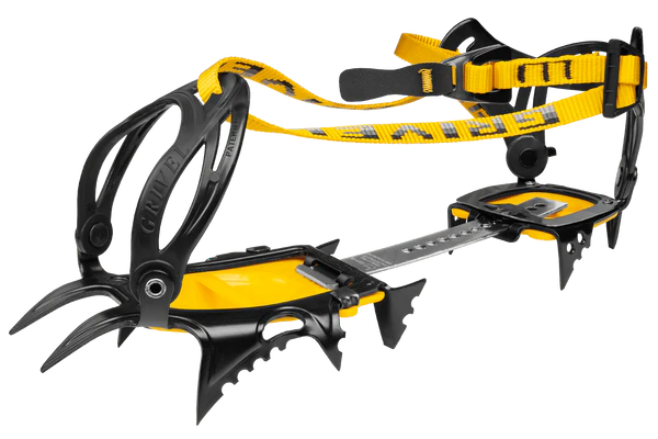 Air Tech, one of our spearheads, has been designed for ascents with both rock and ice. It has 12 short steel points, 8 of which are front and 4 rear. The position of the points is designed to keep the foot steady during ascents, descents and traverse. It adapts to any type of boot thanks to the regulation bar in the middle. Equipped with the famous Grivel proactive Antibott both in the front and the rear. Easy to store in the backpack and not bulky. Perfect adherence, excellent companion for activities on ice.
