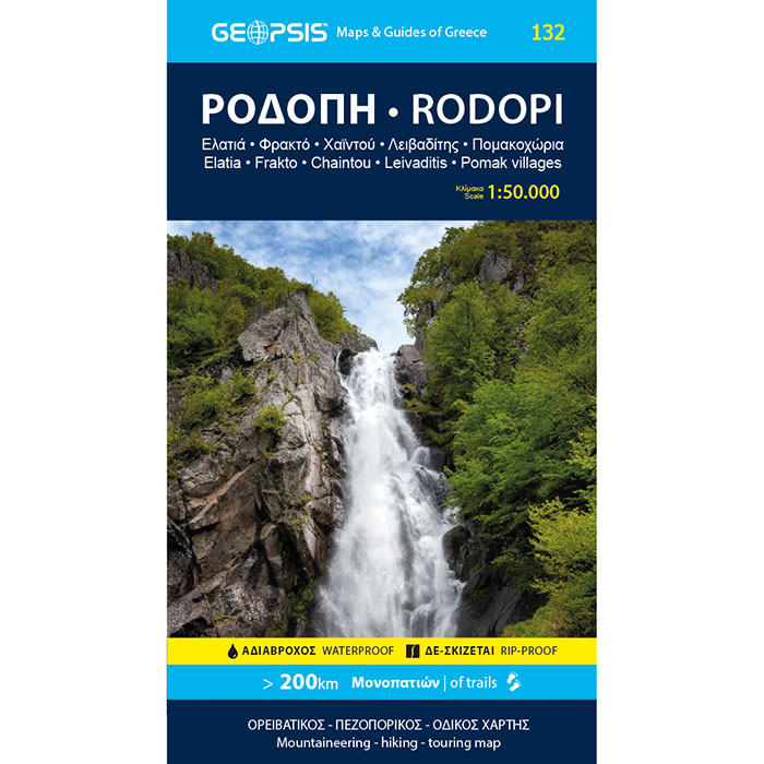 Ο νέος χάρτης Οροσειράς Ροδόπης ενοποιεί τις δύο προηγούμενες εκδόσεις μας 132 και 133 και πλέον καλύπτει: Δάσος Συμήδας, δάσος Ελατιάς, δάσος Φρακτού / Παρανεστίου, δάσος Λεπίδα – Στάμνας, δασικό σύμπλεγμα Χαϊντούς – Ερύμανθου – Κούλας, περιοχή Πομακοχωρίων Ξάνθης, Θρακικά Μετέωρα. Κλίμακα 1:50.000.