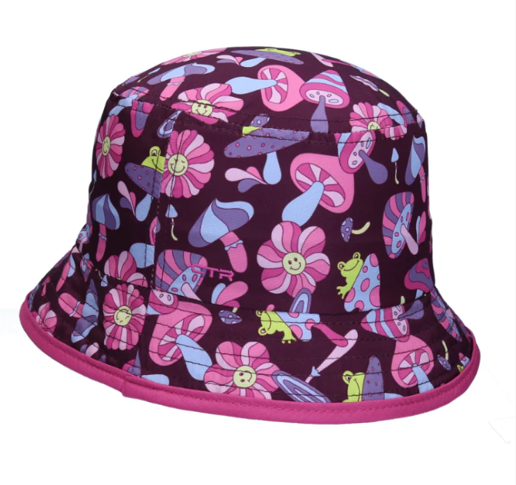 •Lightweight kids Bucket Hat •Recycled HELISHADE UPF50+ & wicking fabric •Playful printed graphics •5 cm brim