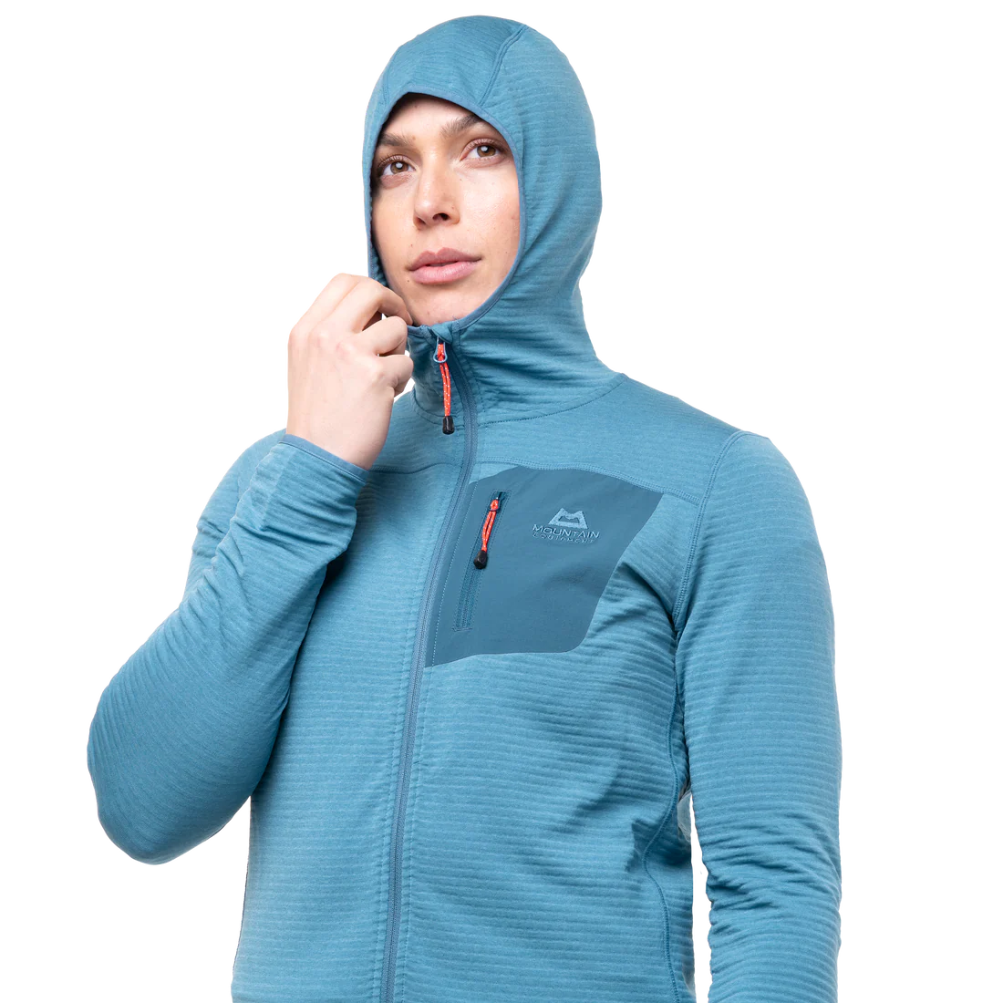 When needing shelter from cold winds or glaring midday sun, the low-bulk hood provides optimal coverage for the head and neck and fits neatly under a helmet, perfect for alpine walls or winter climbing. The slim, Active fit and low-profile cuffs are designed to reduce bulk and layer well, while excellent stretch means you can navigate complex ground without restriction. The full-length zip lets you dump heat when working hard or quickly layer up as the evening lengthens. A zipped chest pocket secures essentials, such as snacks or a phone.