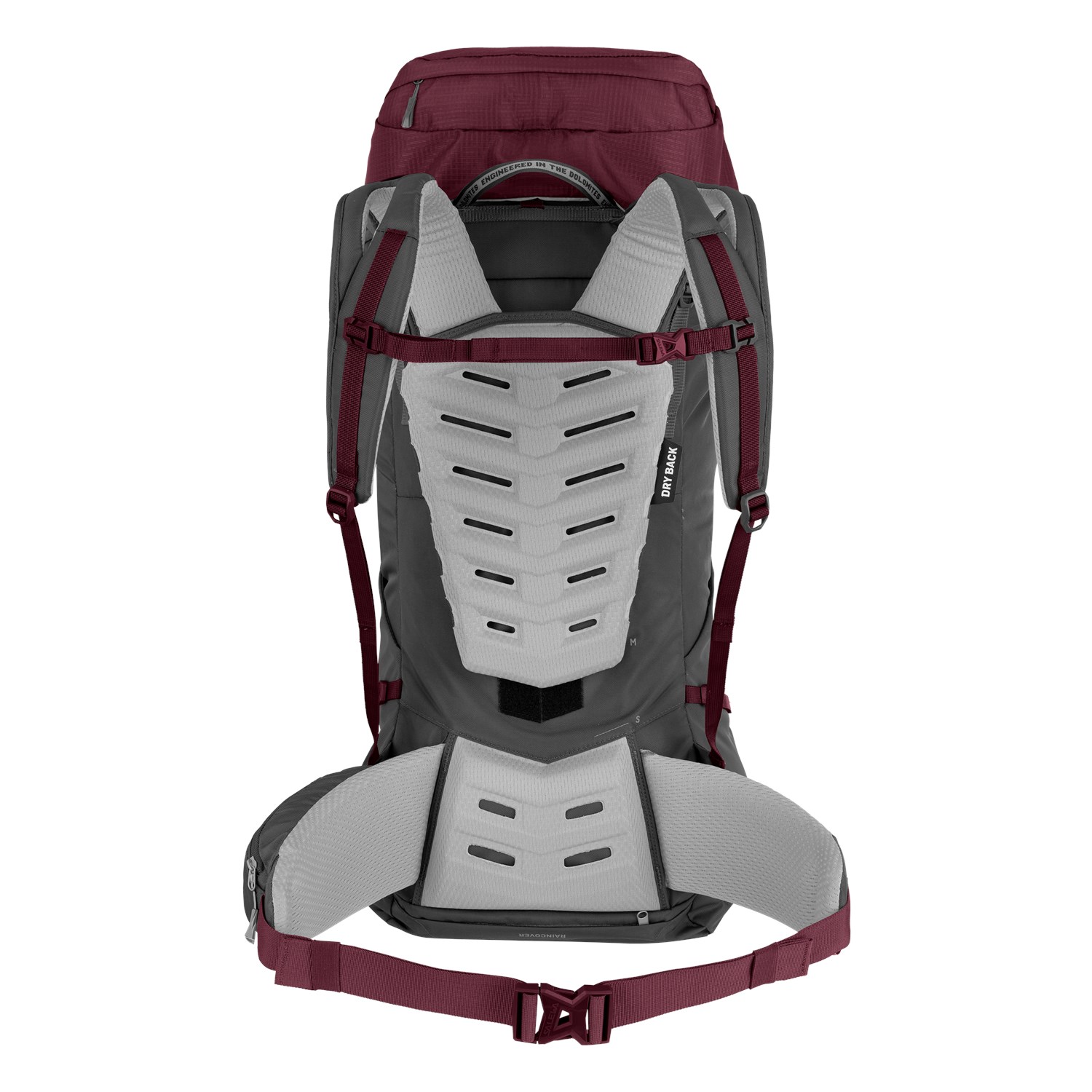 Customizable carrying system Having the right equipment on longer hikes can make all the difference. The Trek Mate features our easy-adjust Dry Back Custom carrying system. It has a padded EVA back panel and 3D ventilation channels to promote good air flow and breathability at the back in all four seasons, while the split shoulder straps still allow great freedom of movement. The adjustable back length and anatomically-shaped, padded shoulder straps, lumbar support and hipbelt with pre-shaped hipfin give an individualized, snug fit and good load transfer to the hips. In addition, load lifter straps allow you to adjust for optimal back fit over long distances. And the lightweight construction helps keep pack weight down.