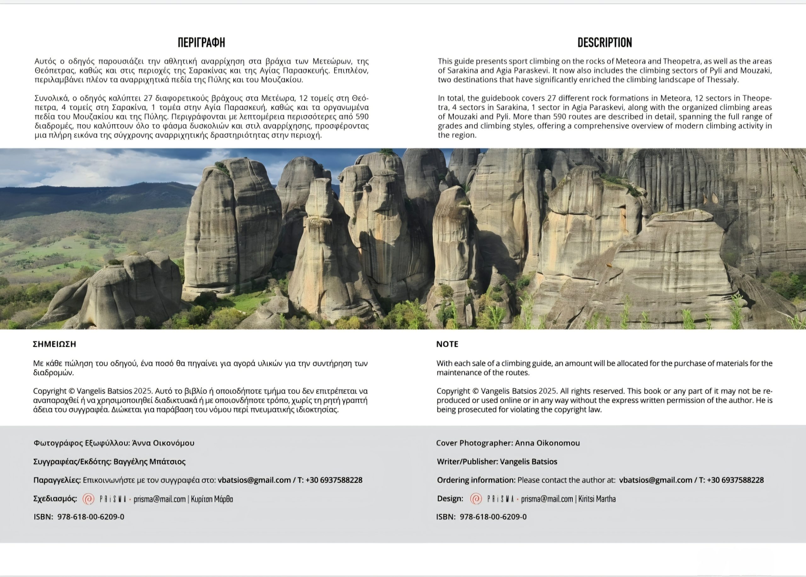Αναρριχητικός οδηγός για Μετέωρα, Θεόπετρα, Σαρακήνα, Αγία Παρασκευή, Πύλη, Μουζάκι.